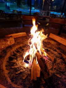 ロビーの暖炉に火を灯しました!暖炉を囲んで楽しいひと時を・・