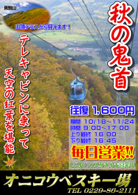 10/18~11/24 今年は紅葉期間毎日運行「テレキャビン」山頂までの空中浮遊をお楽しみ下さい